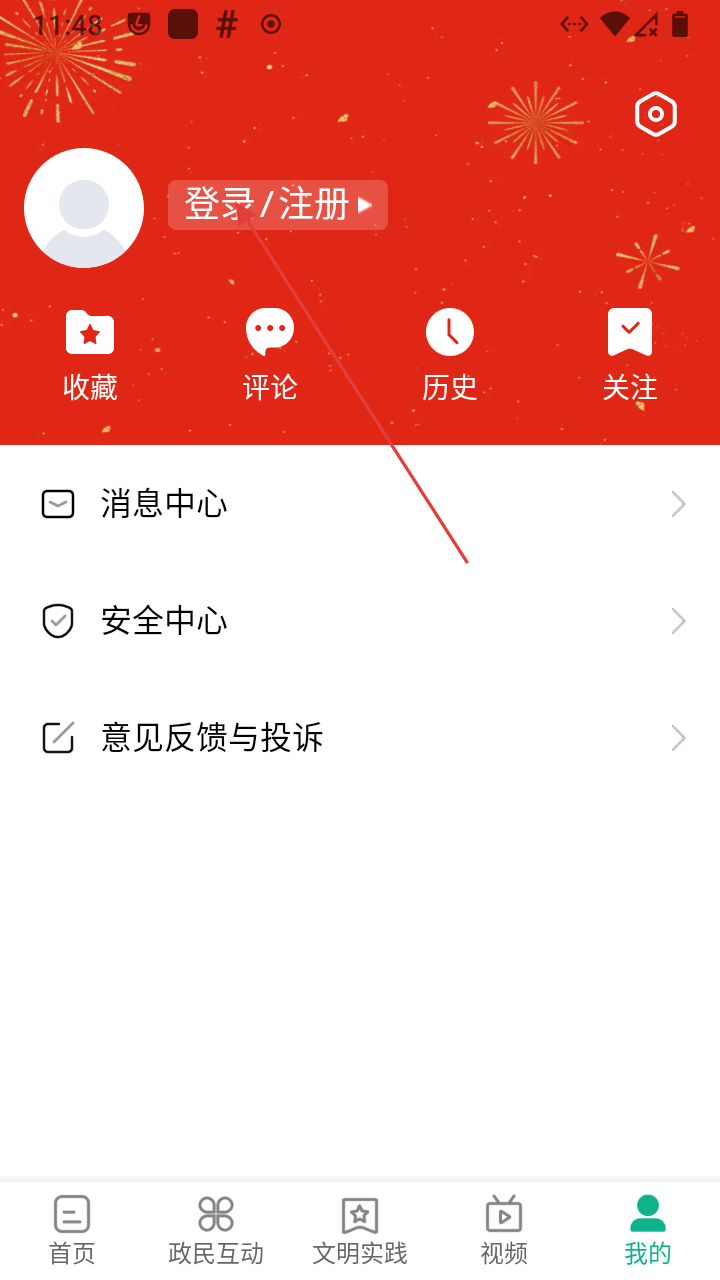 2、在个人中心点击【登录/注册】按钮,进入账号登录注册流程。
