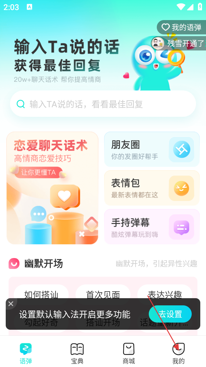 1、打开章鱼输入法,在首页界面点击右下角【我的】,进入个人中心页面。