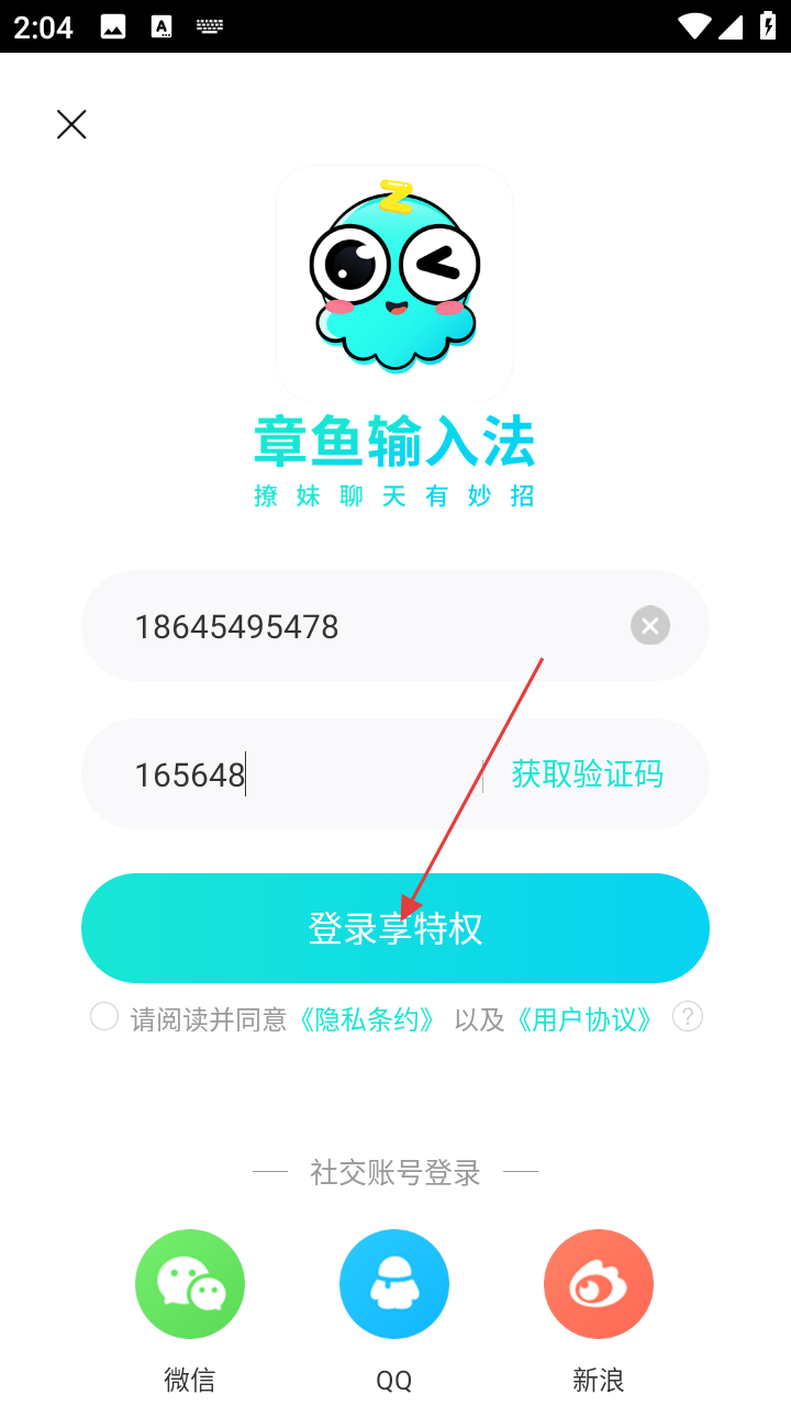 4、勾选同意【隐私条约】和【用户协议】,点击【登录享特权】按钮,完成登录操作。