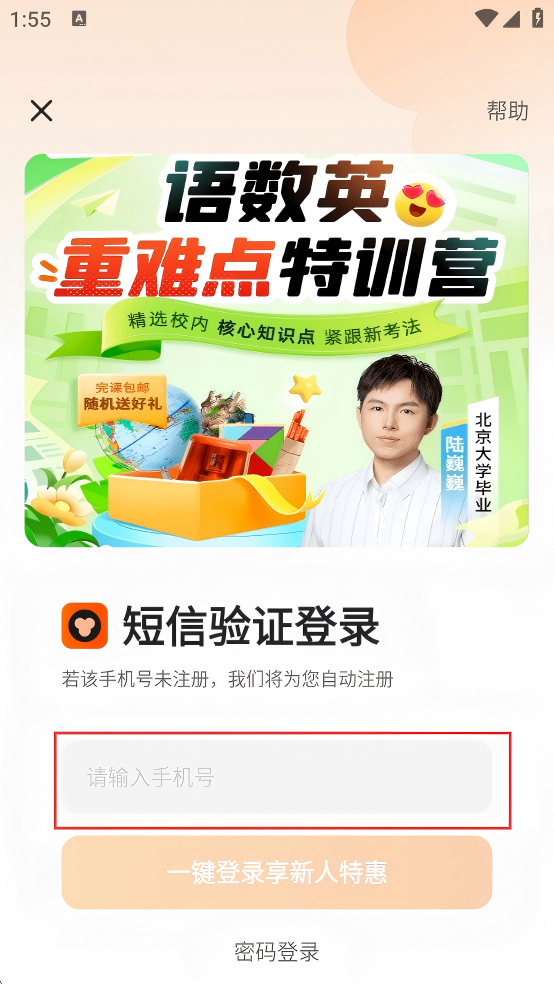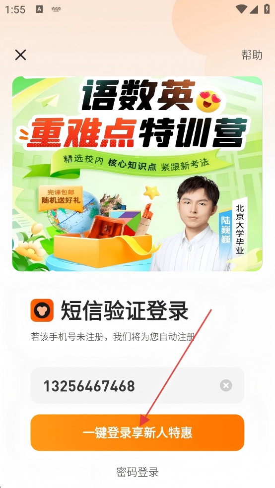 4、输入手机号后,点击【一键登录享新人特惠】,即可完成登录,若手机号未注册,会自动注册。