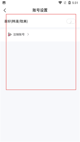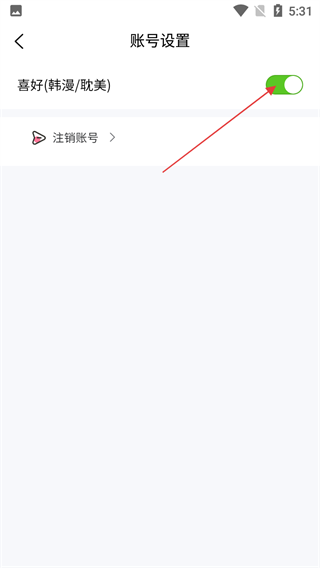3、在账号设置页面,可根据喜好开启或关闭【韩漫/耽美】喜好设置,调整漫画推荐类型。