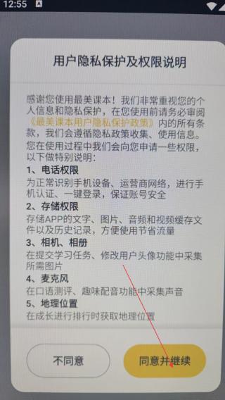 1、打开应用查看用户隐私保护点击同意并继续。