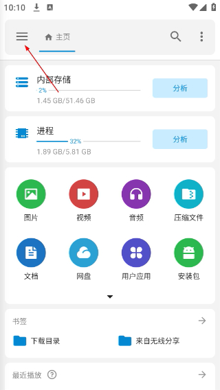 1、在应用主界面,点击左上角的菜单按钮(三条横线图标),展开侧边栏。