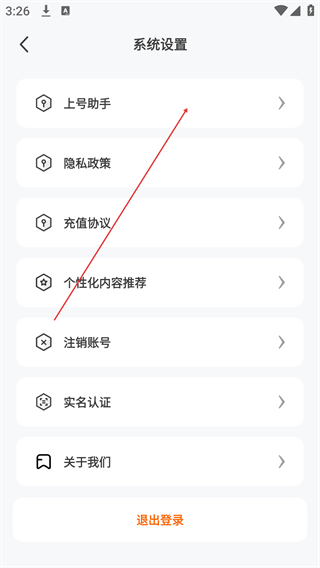3、在系统设置界面中,点击“上号助手”选项,跳转至上号助手功能页面。