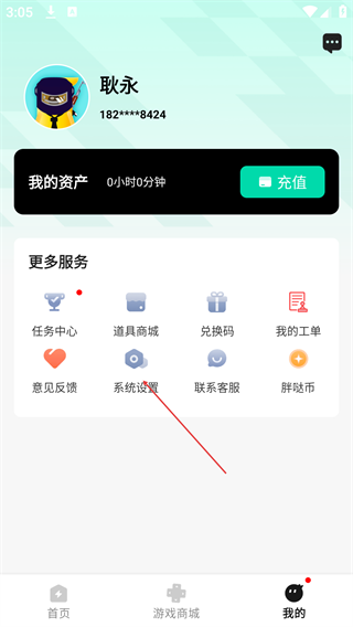 1、进入“胖哒云游”应用首页,点击底部导航栏的“我的”选项,进入个人中心页面。