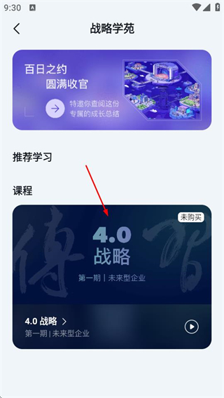 在战略学苑页面,找到并选择“4.0战略”这门课程,随后进入该课程的详情页面。