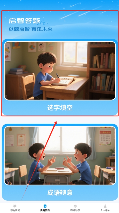3、点击参与成语答题游戏,通过填空和辩意等形式,增加互动性与趣味,可以有效巩固记忆。