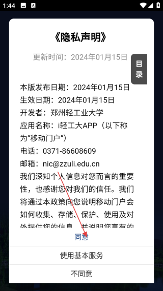 1、打开应用查看协议点击同意。