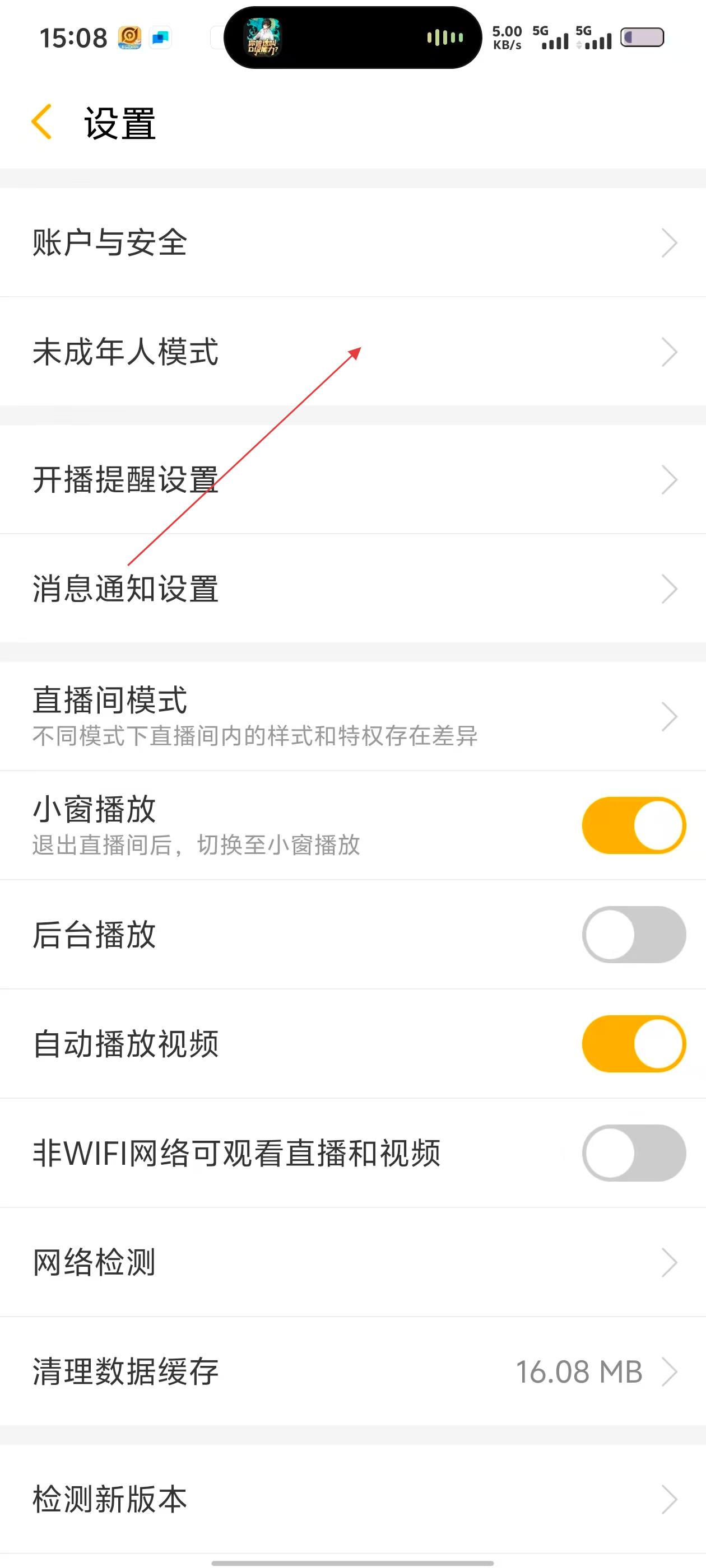 3、在设置界面,点击【未成年人模式】选项,进入未成年人模式设置页面。
