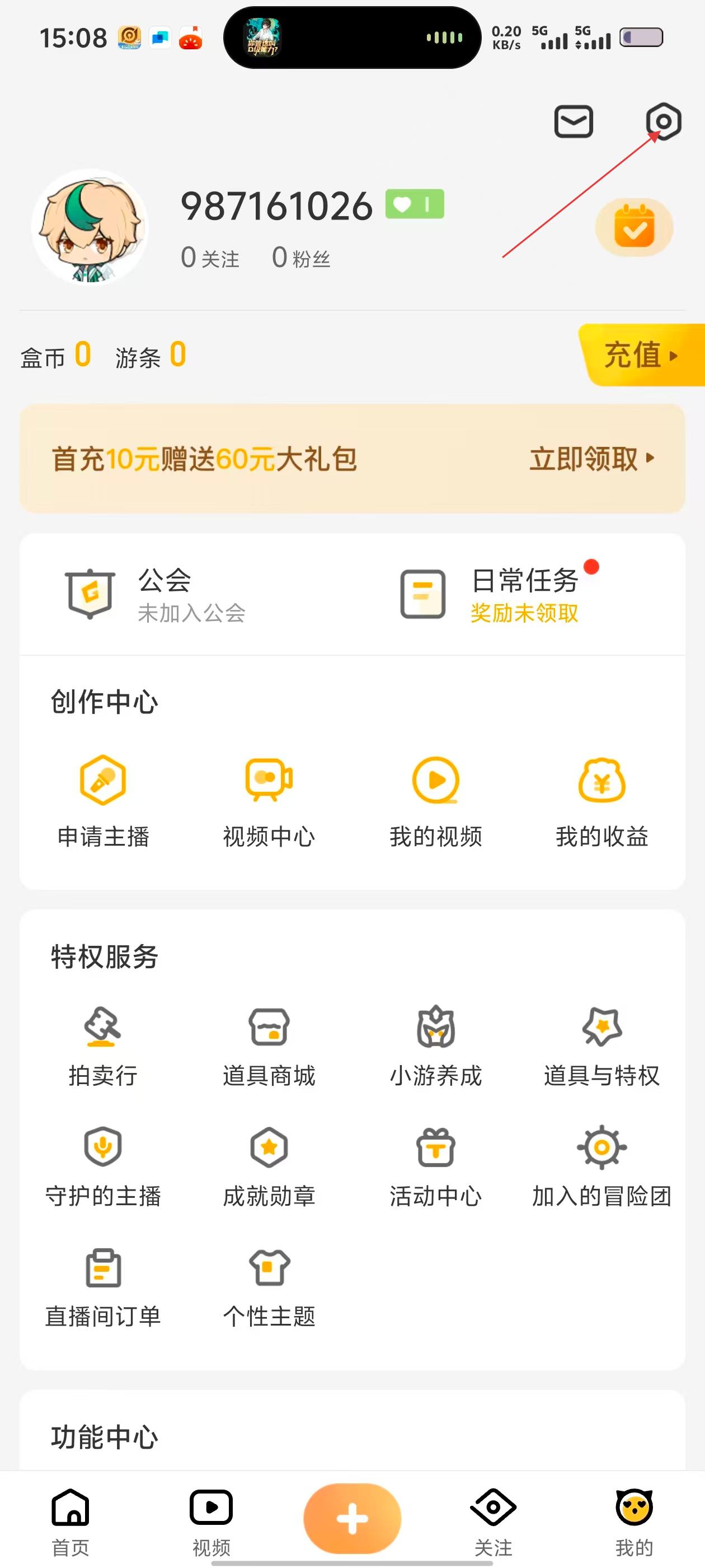 2、在“我的”页面,点击右上角设置图标,进入设置界面。