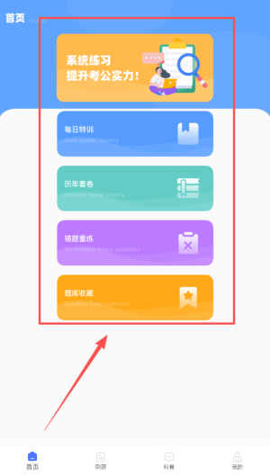 2、进入主界面后,浏览各类课程模块,选充分利用丰富的题库资源,轻松提高自身的综合能力和应试能力。
