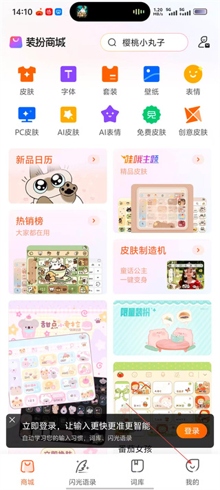 1、进入【装扮商城】,可利用搜索框查找喜欢的装扮,还能浏览【皮肤】【字体】等分类及各类推荐板块,挑选心仪装扮。