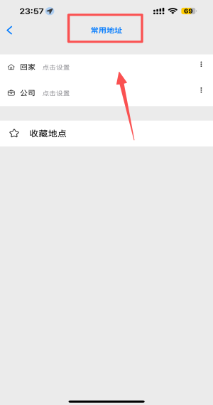3、进“常用地址”页,依次点“回家”“公司”设置门牌坐标保存。
