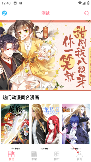 1、在软件首页可浏览热门动漫同名漫画,若需个人功能可点击底部【我的】按钮进入个人中心界面。