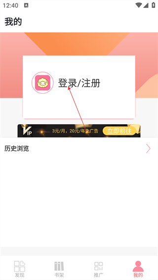 2、进入【我的】界面后,可点击【登录/注册】选项,进入用户登录界面。