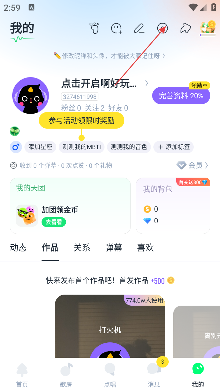 2. 完善个人信息,设置头像和昵称。