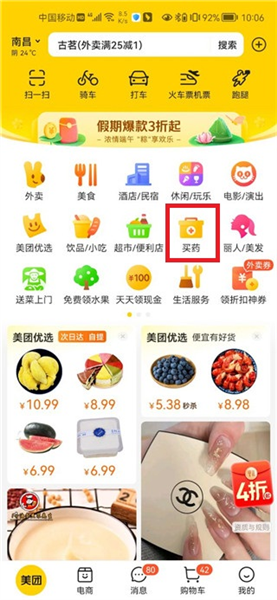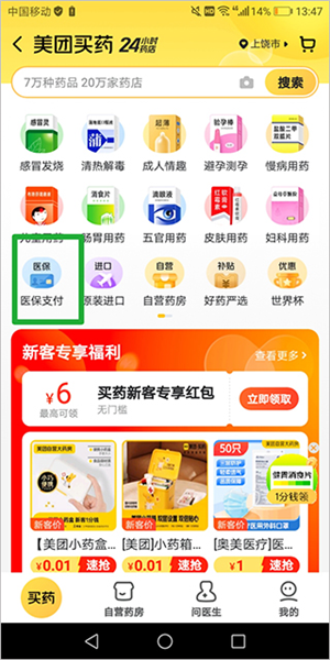首先打开美团App,进入后找到并点击“买药”板块,这就是我们常说的美团买药功能入口。
