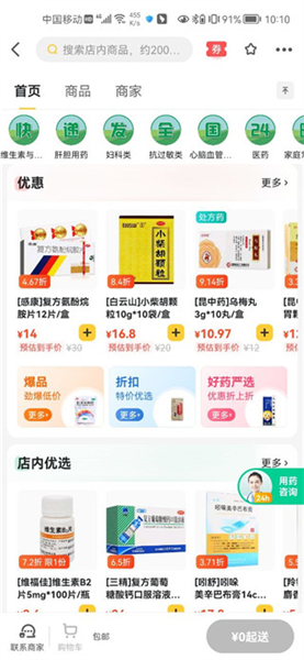 支持超市百货药品下单;