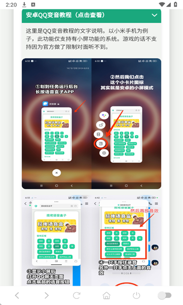 在软件里查看变音教程,借助悬浮窗调用语音包来聊天。