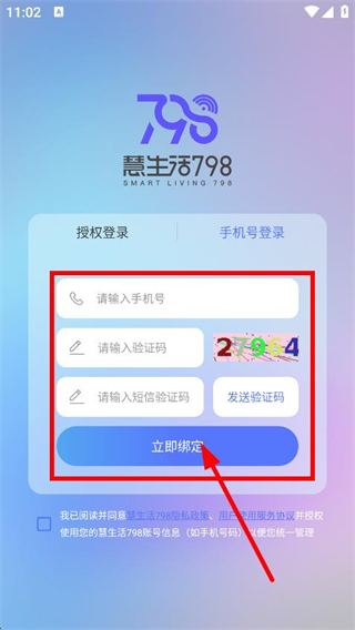 请输入手机号、验证码和短信验证码,点击“立即绑定”按钮,即可完成登录流程。