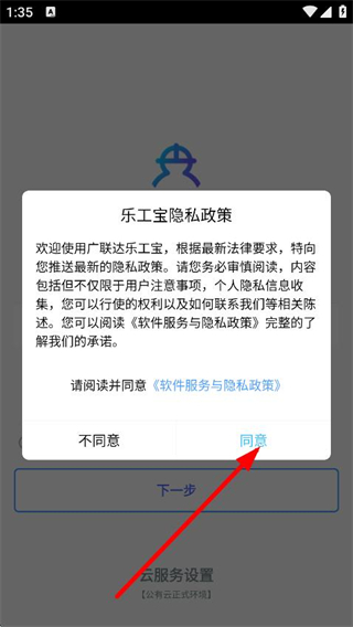 在乐工宝隐私政策弹窗里点击同意,即可进入乐工宝的登录界面。