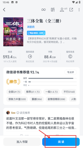 在书籍详情页面,点击阅读按钮,进行书籍阅读。