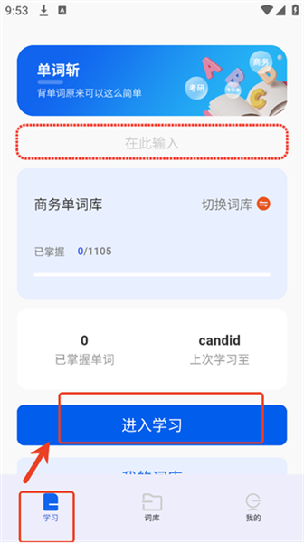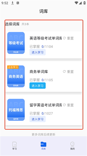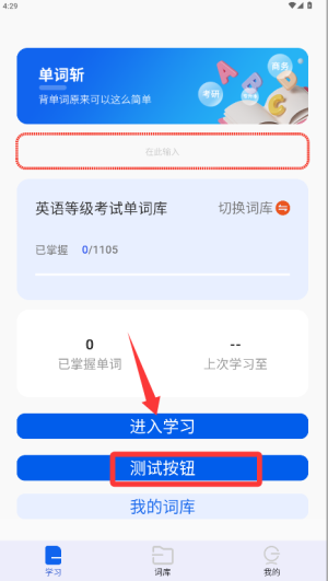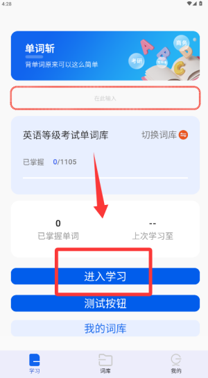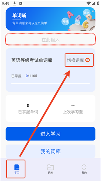 挑选想要学习的单词库,点击“进入学习”按钮就能切换词库啦。