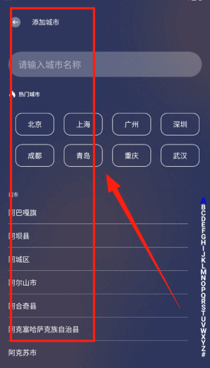 2、搜索框输入目标城市,系统会返回相关天气信息,出行前能够迅速了解目的地的天气状况。