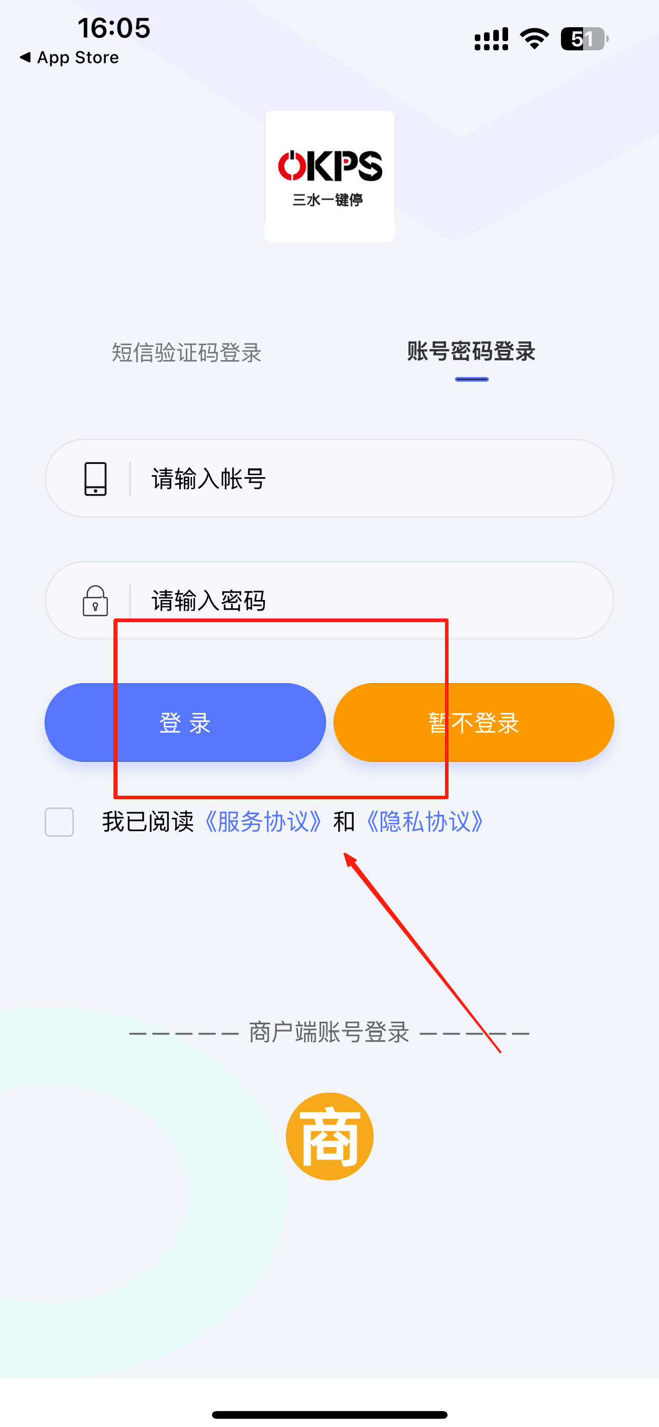 1、点击“账号密码登录”输入账号和密码进行登录。