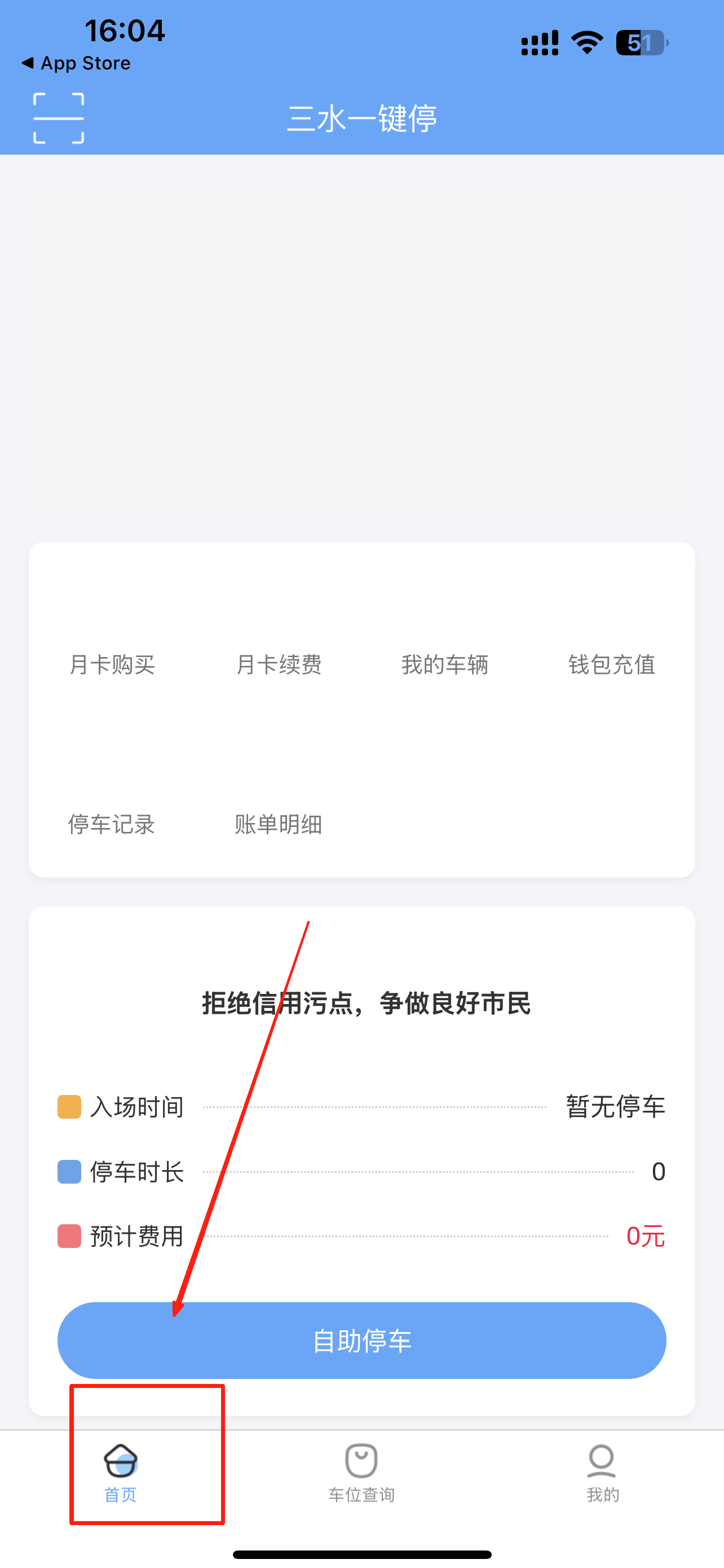 2、点击“自助停车”按钮开始停车操作。
