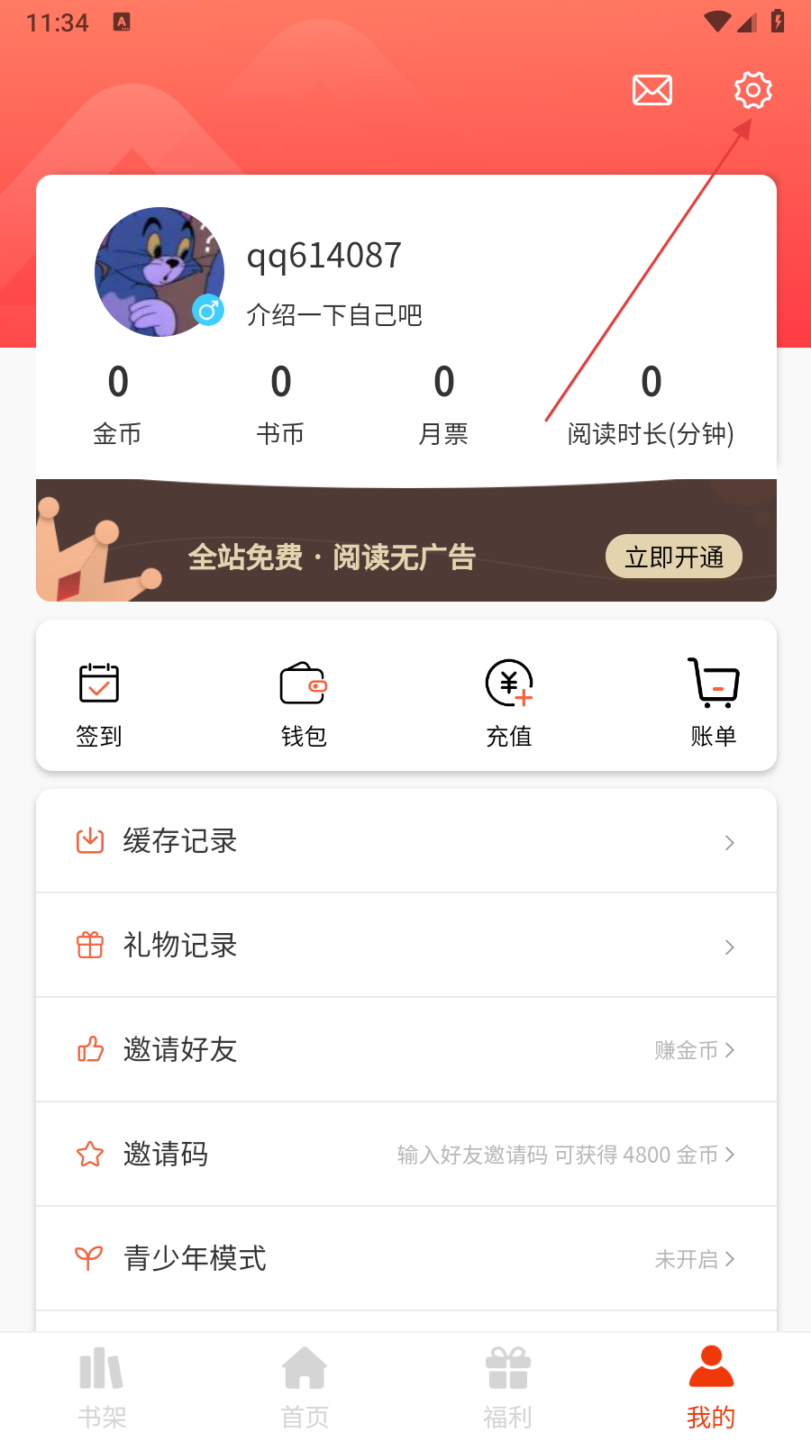 2、在个人中心界面中,点击右上角的设置图标,进入设置界面。