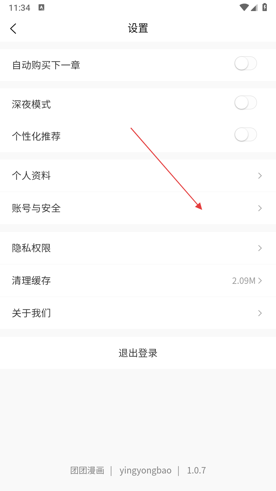 3、在设置界面中,找到【账号与安全】选项并点击,进入账号与安全设置界面。