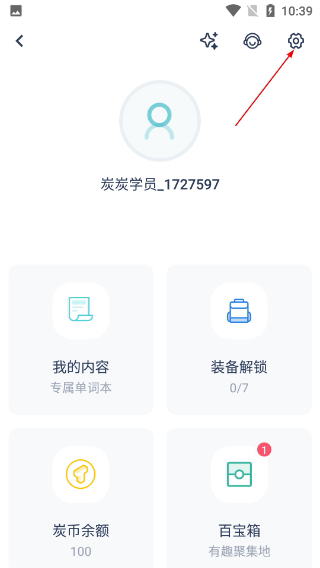 2、在个人中心页,点击右上角设置图标,进入应用设置界面。