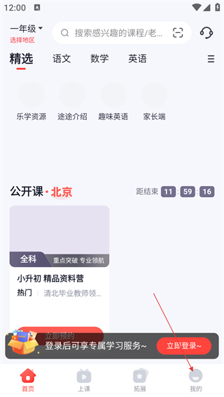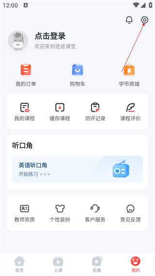 1、在途途课堂APP首页,点击底部导航栏的【我的】,进入个人中心页面。