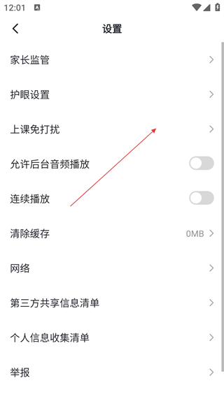 3、在设置页面中,选择【上课免打扰】选项,进入该功能的配置说明界面。