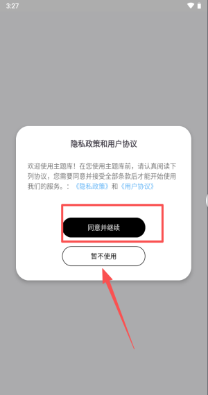 1、阅读隐私政策与用户协议后点“同意并继续”,即可进入主界面。