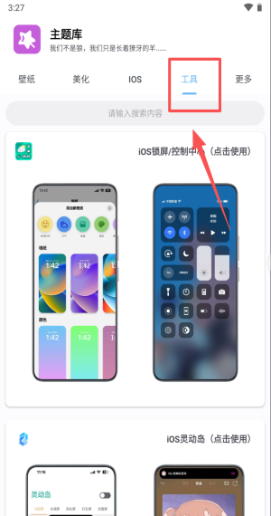 4、搜索“iOS锁屏”或“灵动岛”点击使用,秒变iPhone控制与息屏界面。