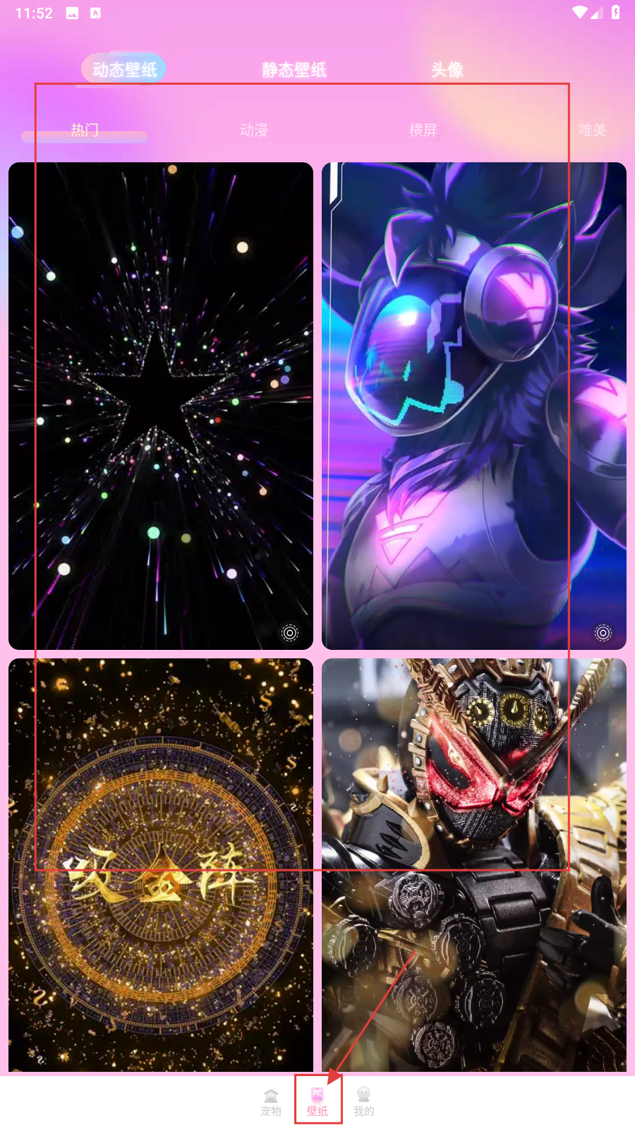 3、还可以点击【壁纸】里面有很多动态壁纸可以选择。