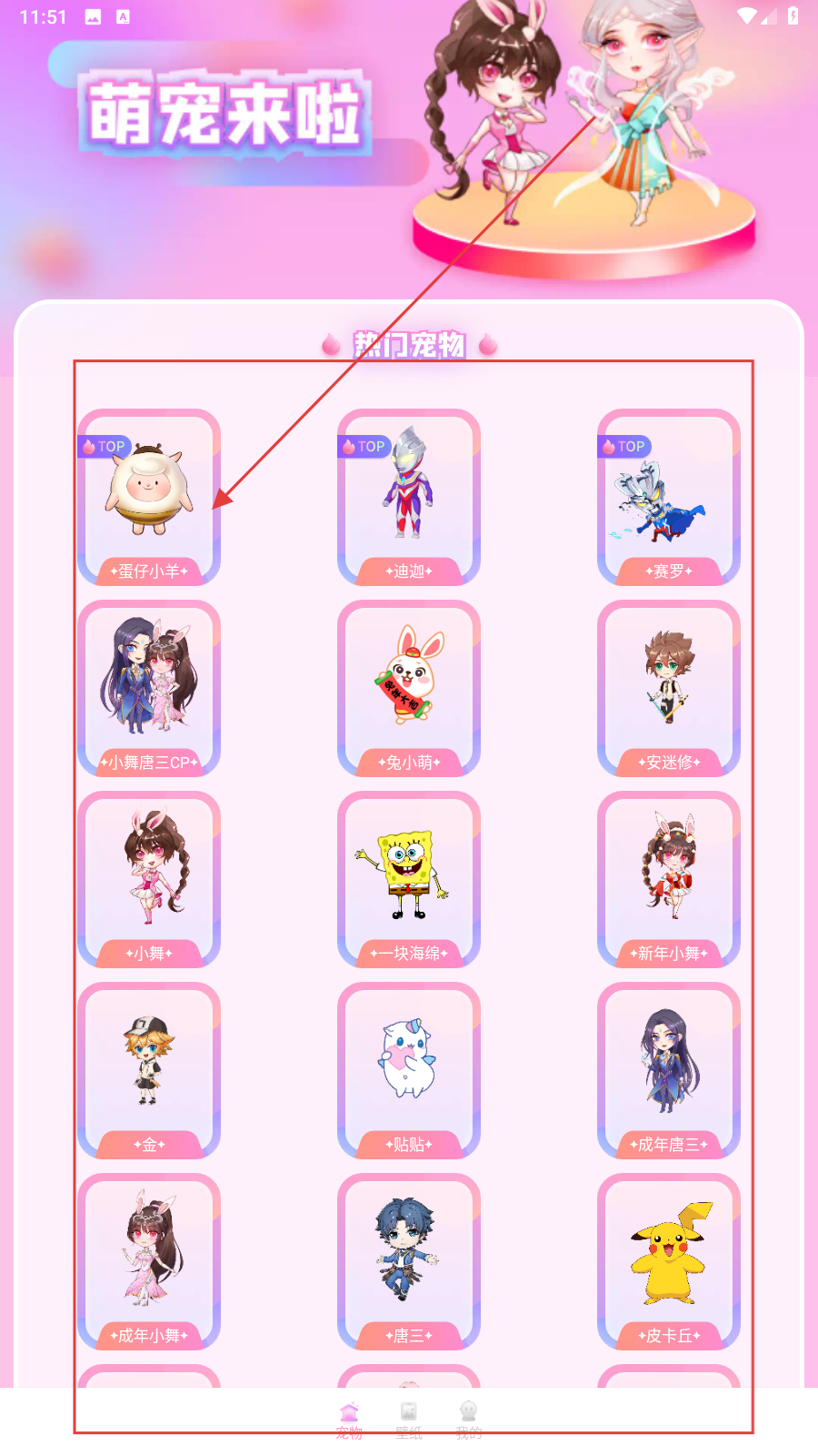 1、打开应用,选择自己喜欢的宠物并点击。