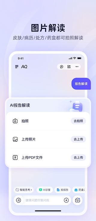 AQ安卓版,AQ作为一款智能健康管理工具,致力于为个人及家庭的健康管理提供助力。其服务核心依托于智能算法对健康问题的精准分析能力,不仅能够解答各类日常健康疑问,还可对用户上传的医疗图片进行识别与解读。同时,它具备个人及家庭成员健康信息的数字化管理功能,能够系统化地记录各项相关数据。