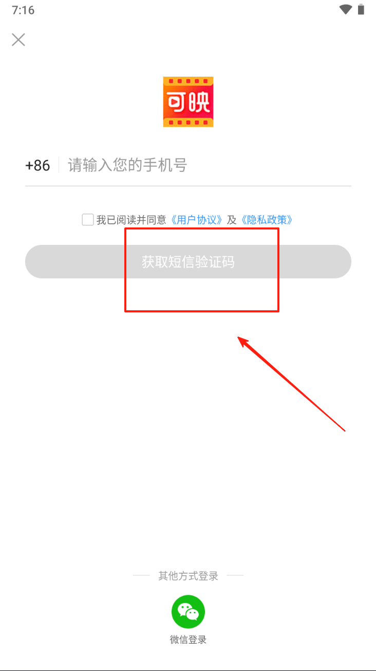 4、输入手机号并点击“获取短信验证码”按钮进行注册。