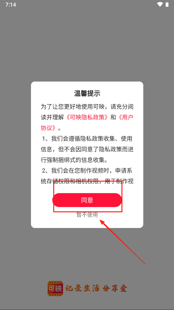 1、阅读并同意隐私政策和用户协议,点击“同意”按钮。