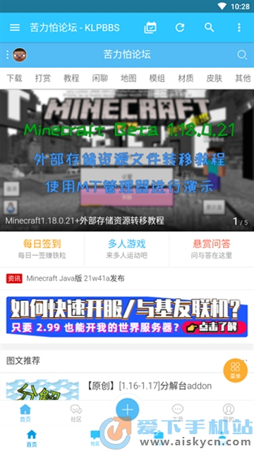 1. Minecraft社区交流:苦力怕论坛是一个专注于Minecraft游戏的社区交流平台;