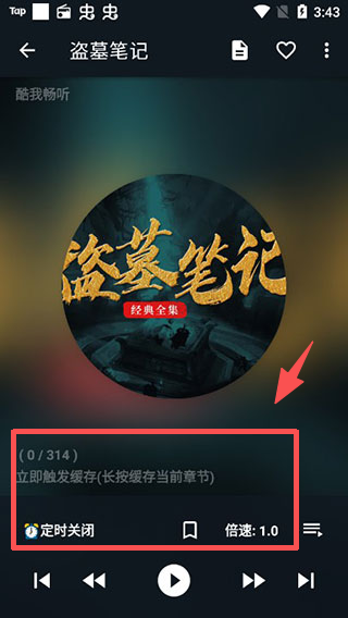 4、进入书籍播放页,可使用缓存、定时关闭、调整倍速等功能,自定义听书的相关设置。