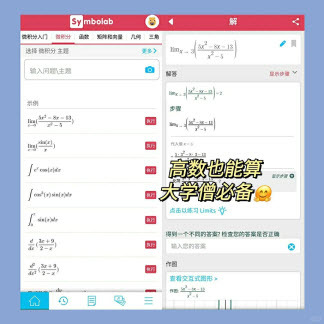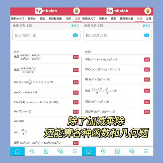 symbolab是一款数学计算器软件,支持初等代数、代数、微积分入门、微积分、函数、矩阵和向量、几何、三角等多种数学公式计算。仅需这一款软件,就能满足你所有的计算需求,它操作简单、功能强大,计算结果十分准确,可在多个领域为大家提供帮助。