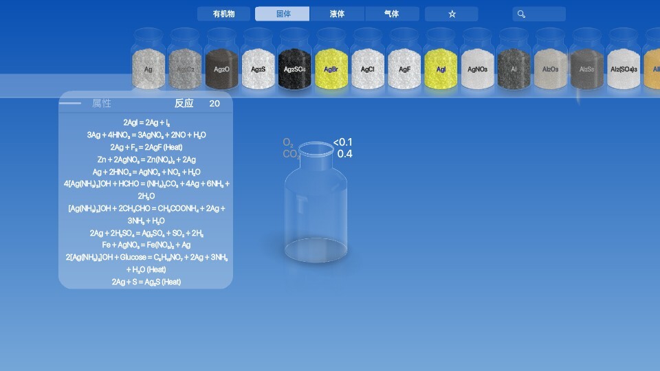 和那些单调无趣的书本不一样,每当化学反应发生时,CHEMIST就会自动呈现出对应的化学方程式,还有气泡冒出、沉淀生成、颜色改变、爆炸等一系列能让你印象深刻的反应现象。