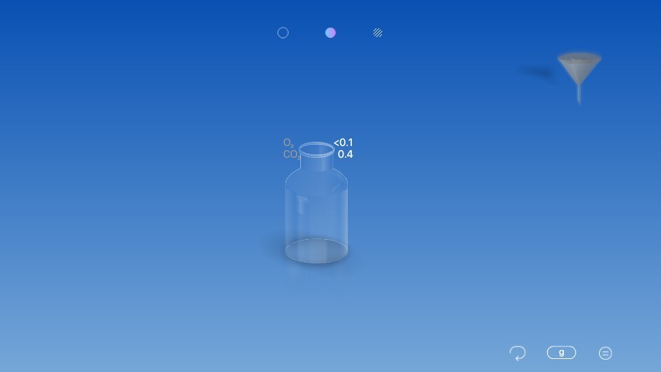 打开软件后,界面上只有一个空瓶子,此时用户可以点击顶部的三个圆点。
