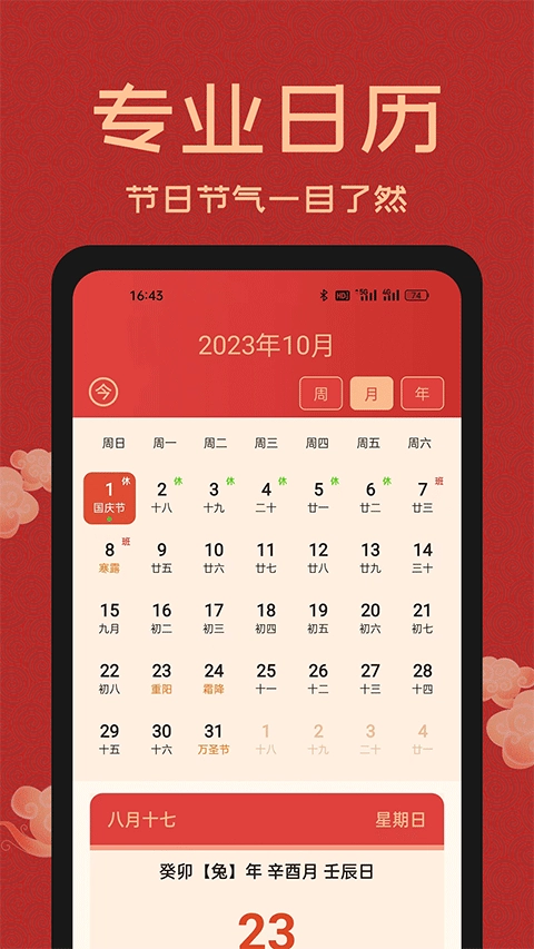 中国万年历配备云同步功能,能在各类设备间顺畅切换,让用户可随时查看日历信息。个性化阅读模式支持用户依据自身喜好挑选内容,提升了使用感受。其日程管理工具十分好用,支持自定义提醒设置,保证用户不会错过任何重要日期。精准的天气预报服务为用户提供可靠的气象数据,助力用户妥善规划日常行程。