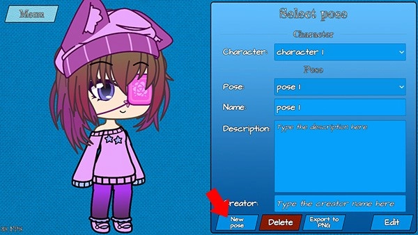 同样没有默认的Pose文件,点击下方的New pose即可创建第一个pose;接着在上方的Character下拉框里选中我们的角色卡,再点击右下角的Edit按钮就能开始编辑Pose了。