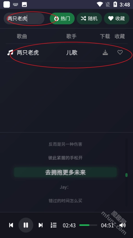 离线 :支持将歌曲到本地,方便无网络时收听.